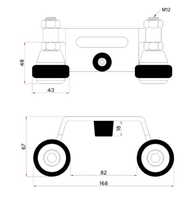 Horní doraz (dojezdová vidlička - jednodílná) s vodícími gumovými kladkami 80 mm pro samonosné brány.