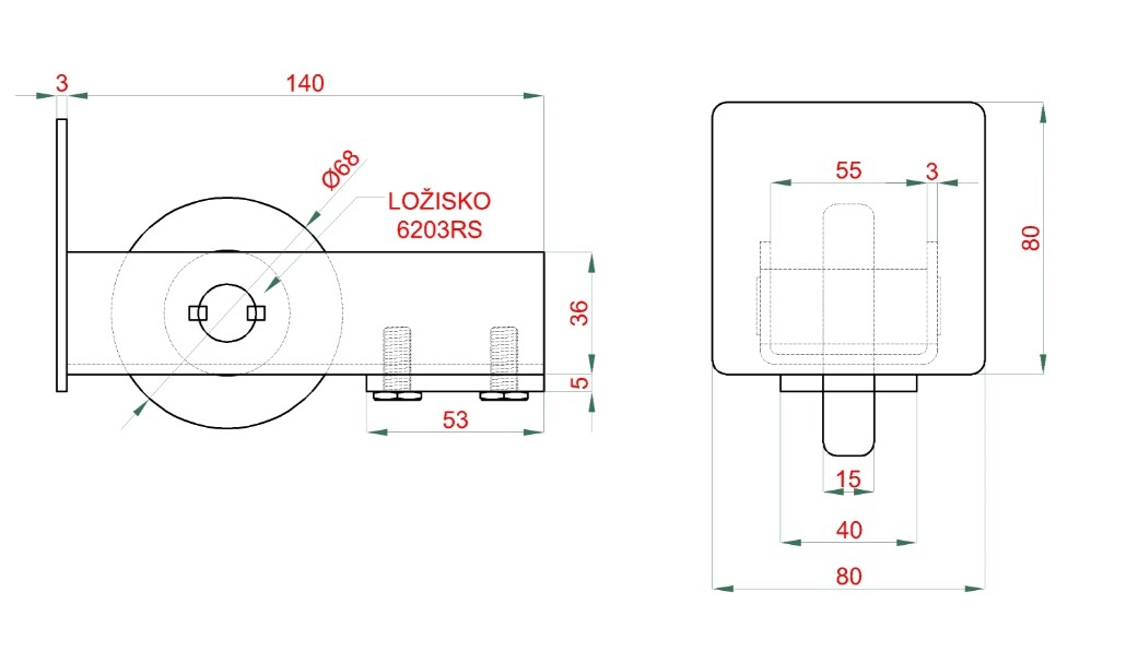 Zinkované náběhové kolo s ložiskem pro posuvné samonosné brány pro C profil 80x80x5.