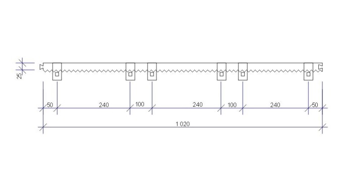 Ocelové jádro: 10 x 10 mm - Rozměry: 25 mm × 20 mm x 1000 mm