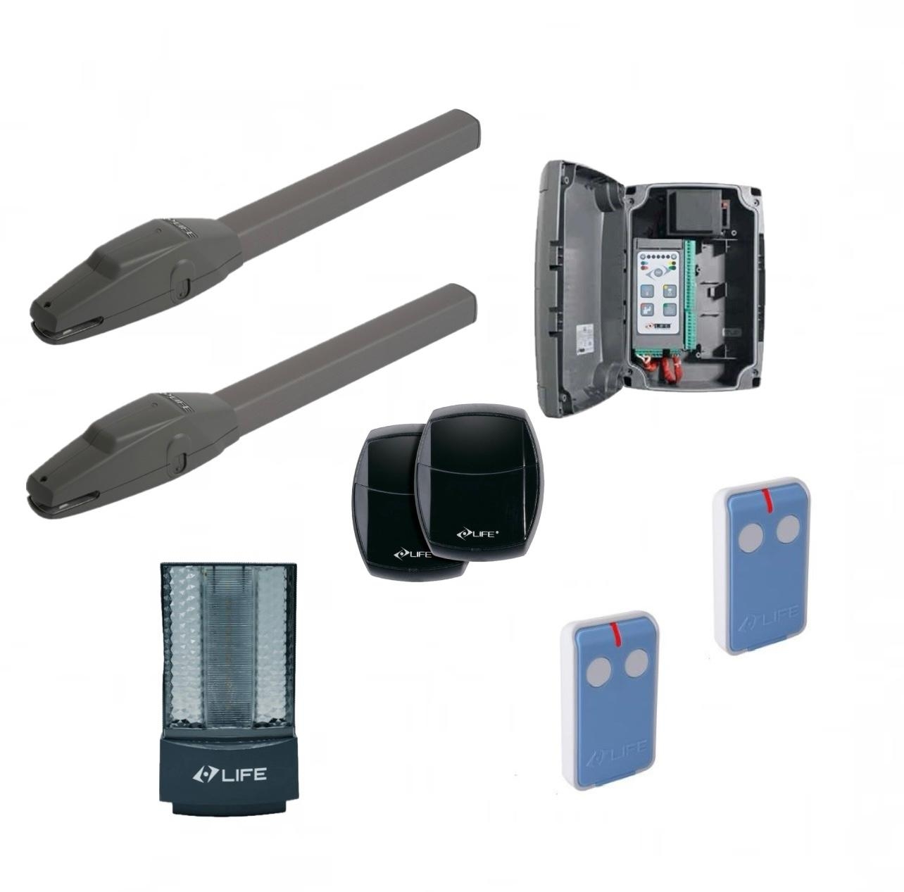 Sada pohonů značky LIFE - OP224 sada EASY - pro křídlové brány do maximální šíře křídla 2,2 metru a hmotnosti 250 kg.