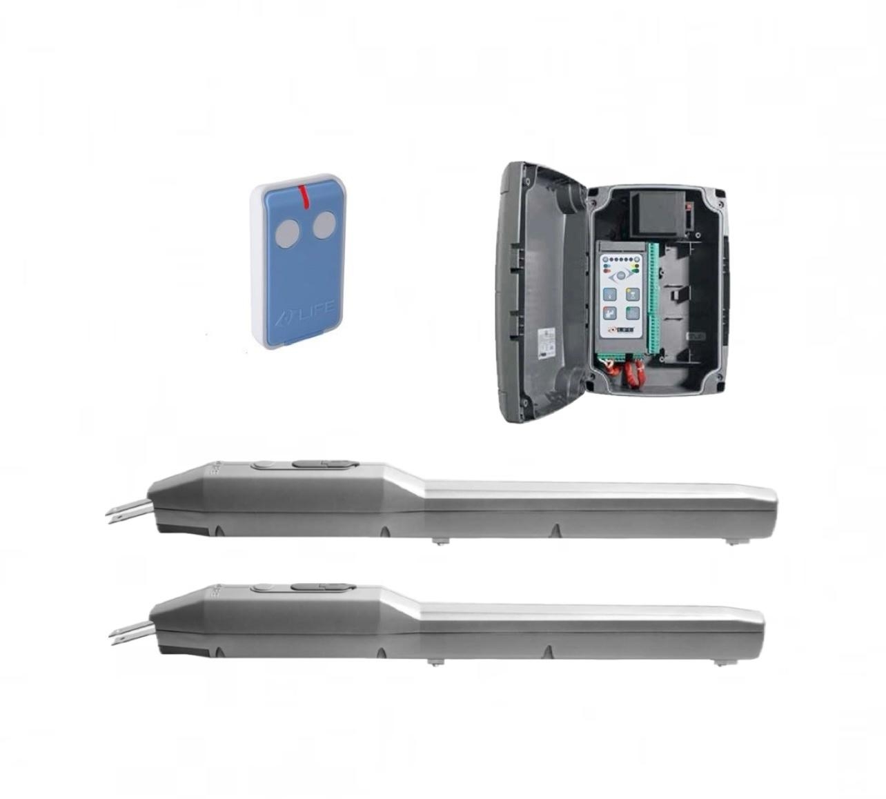 Sada pohonů značky LIFE - OP5 UNI sada EASY - pro křídlové brány do maximální šíře křídla 5 metrů a hmotnosti 900 kg.